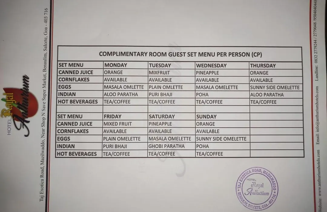 Hotel Royal Anthurium Benaulim — это отличный вариант для проживания в районе Benaulim Beach, в радиусе 2 км от музея Гоа Читры. Гости, останавливающиеся в этом 3-звездочном отеле, могут припарковать свой автомобиль на территории.